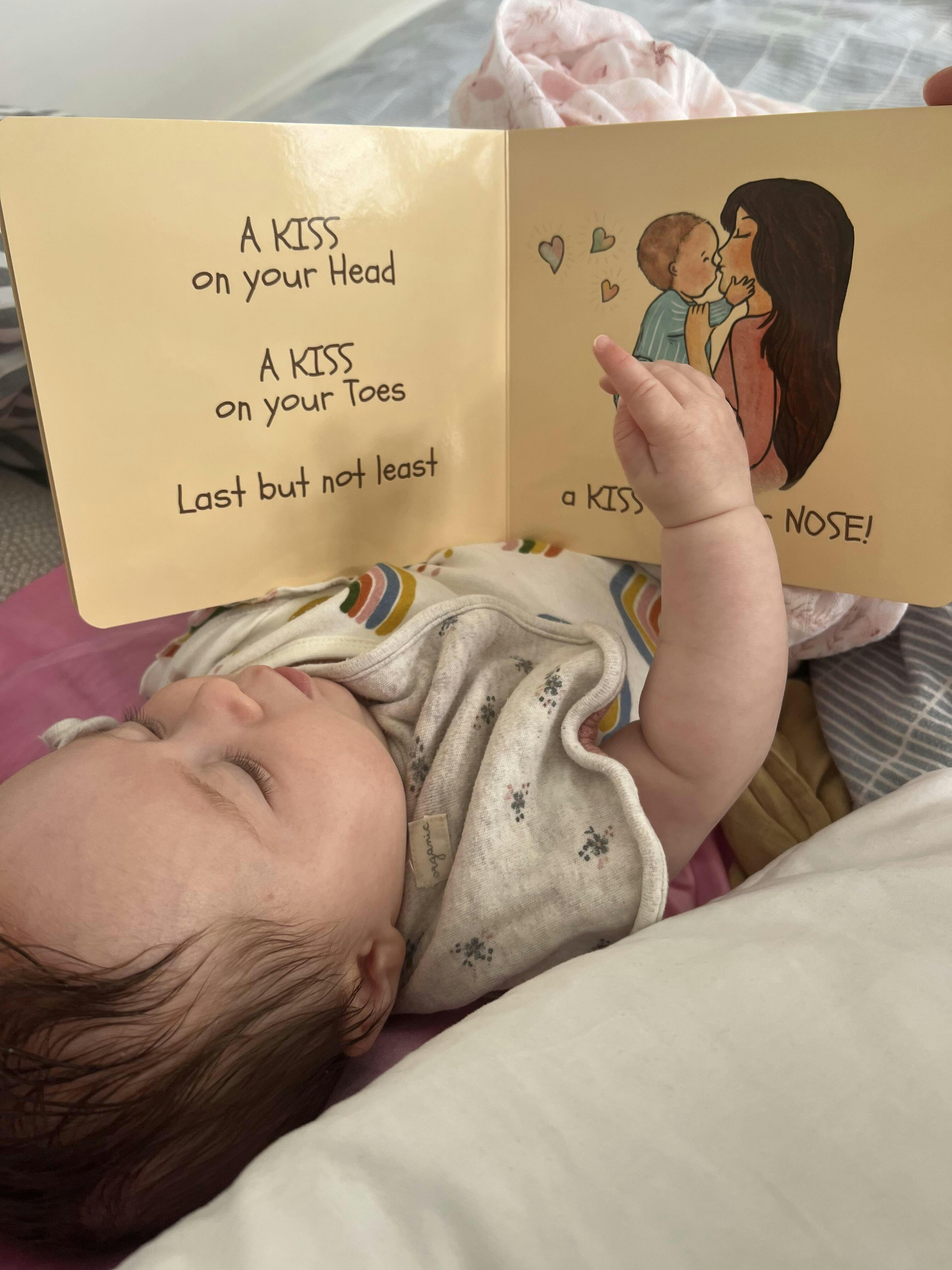 "A kiss on your head, A kiss on your toes, last but not least...A kiss on your nose"